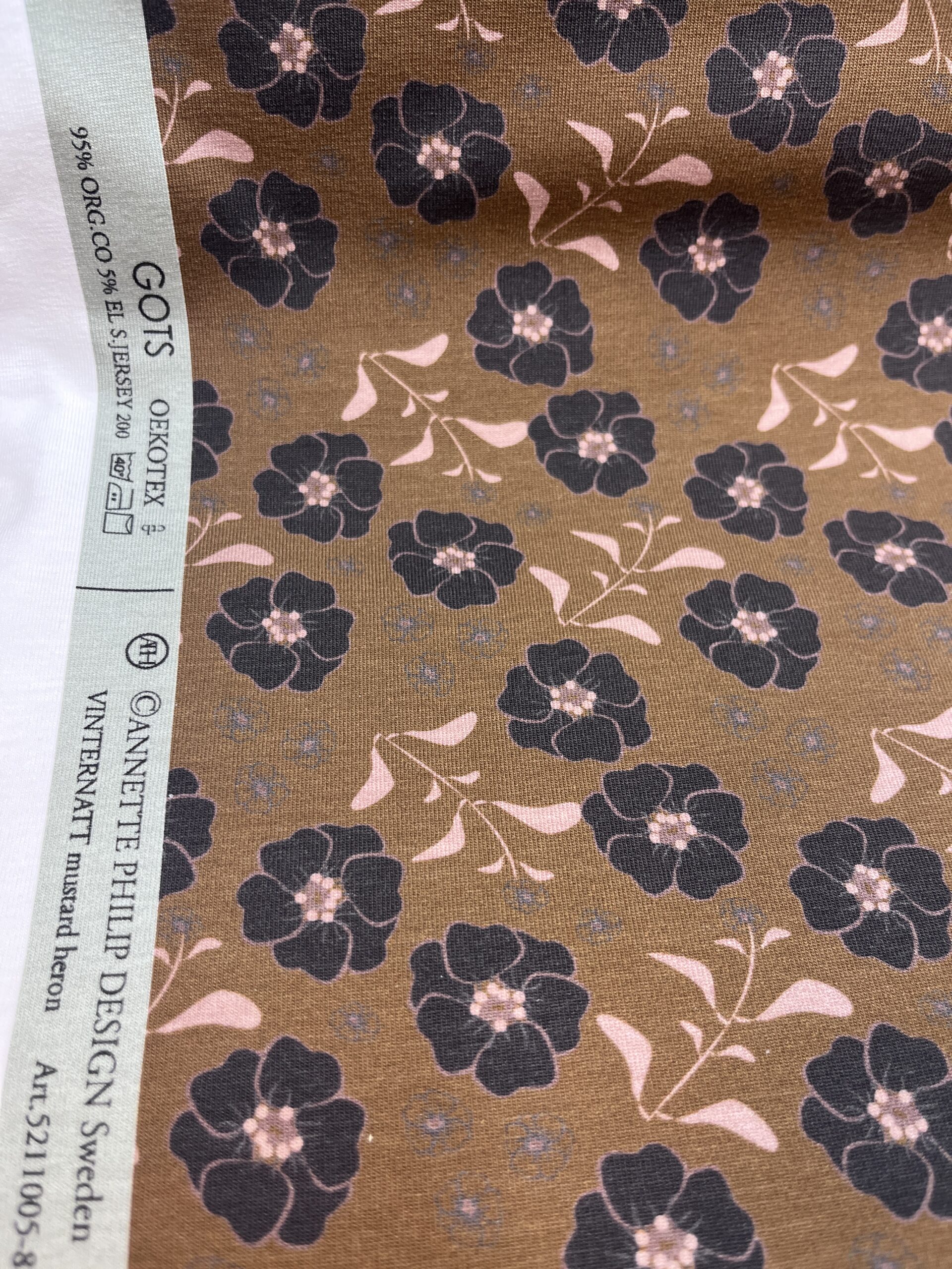 Tryckt trikåtyg i en härlig kvalité som passar till kläder för både stora och små. Maskintvätt 40°, ej torktumling. Bredd ca 160cm. GOTS-certifierad och ÖKOTEX 100. Tryckt i Europa.